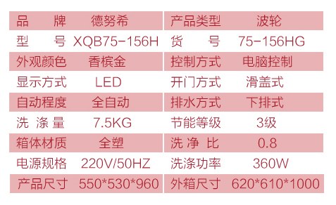 XQB75-156H/香槟金指导零售价1999元